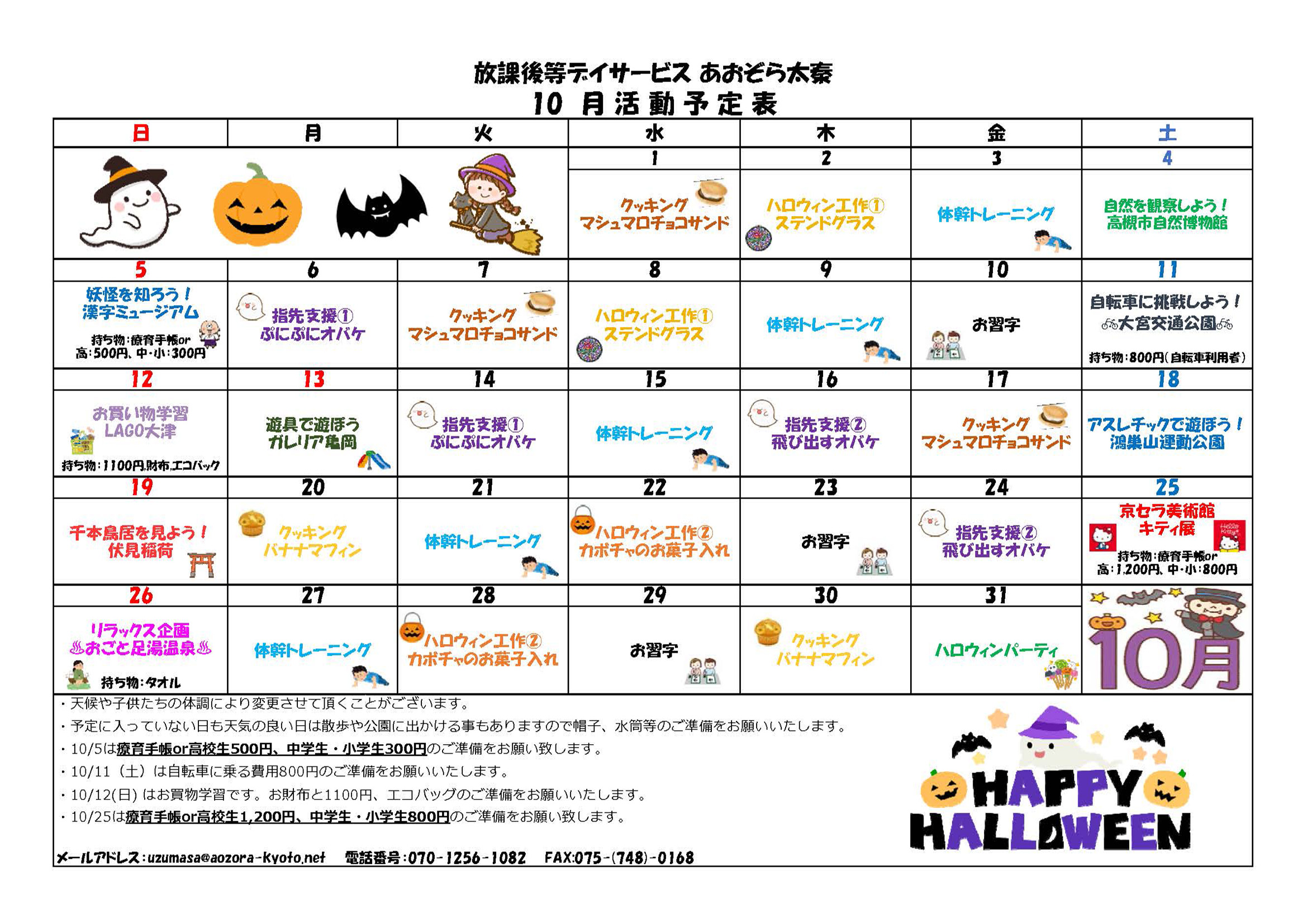 土日対応・送迎あり~京都府あおぞら会はお子さまへの支援・療育を目的とした福祉施設です│あおぞら太秦 活動予定表ページ